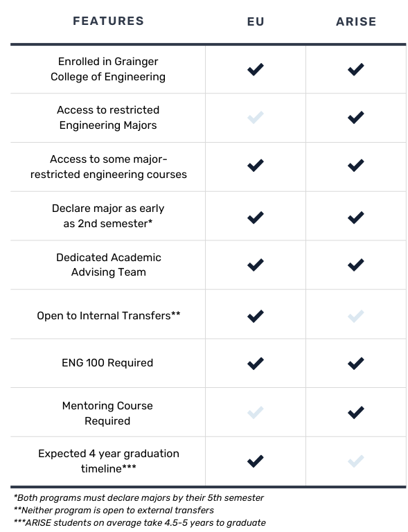 No, ARISE and the Engineering Undeclared (EU) program are different, even though the students in both programs are Engineering Undeclared majors. Here is the comparison: